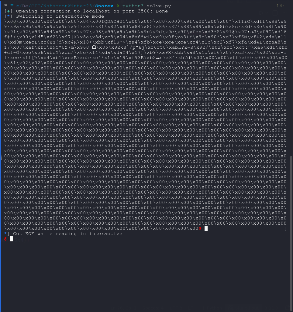 ~/Desktop/CTF/NahamconWinter25/Snorex ❯ python3 solve.py